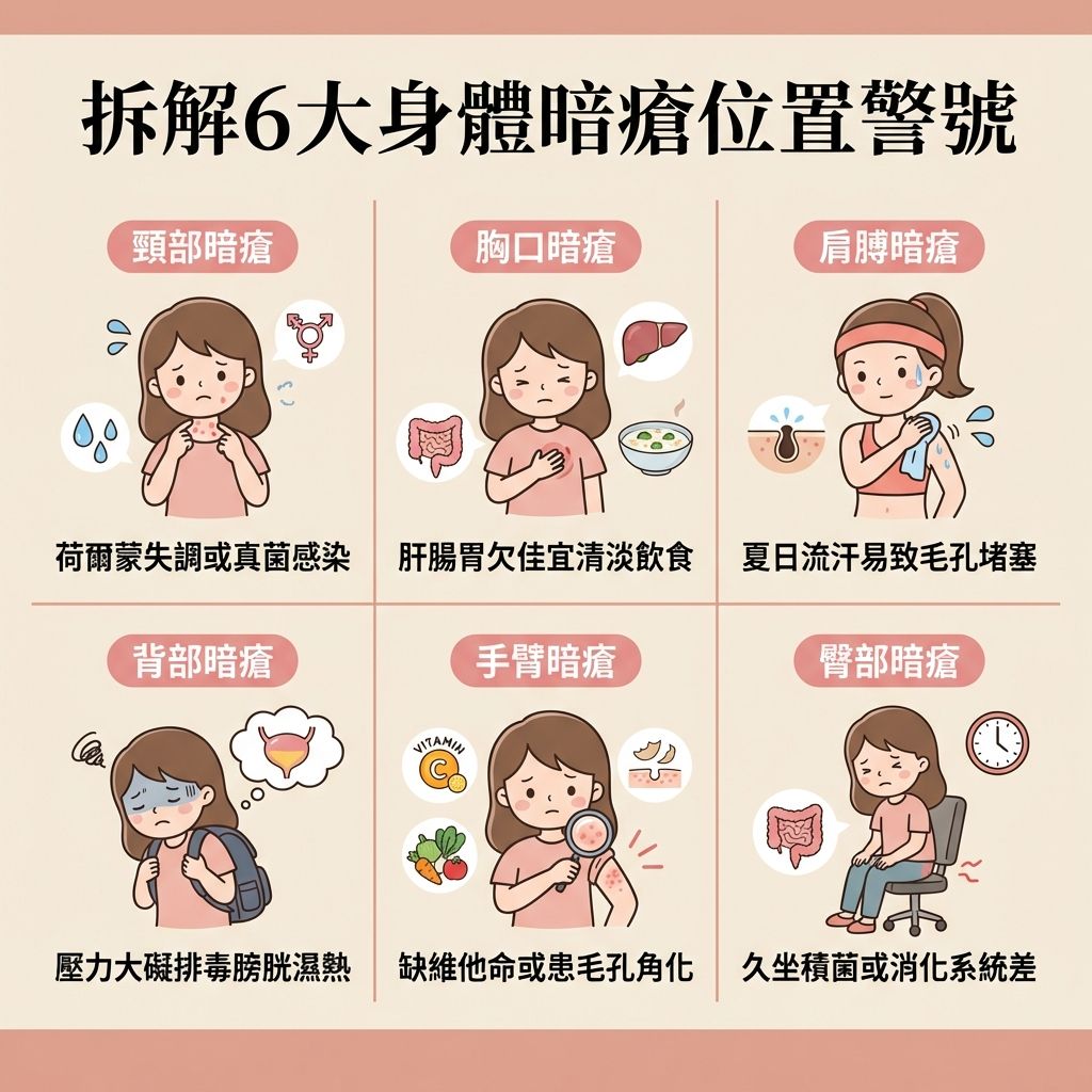六個身體暗瘡位置代表的身體症狀?