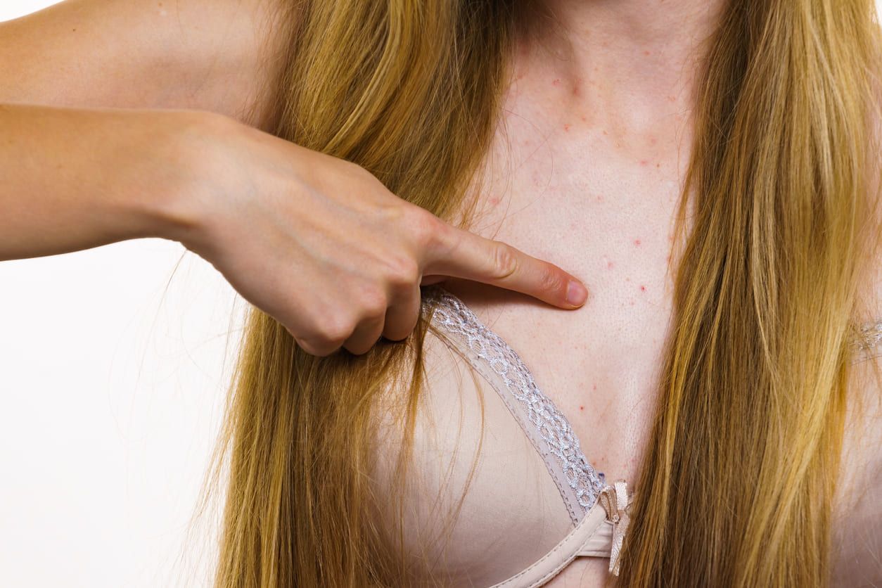 暗瘡位置在胸口雖然較少見,但一旦被胸口暗瘡纏上也十分煩人,通常需要一段時間才能徹底「斷尾」,胸口生瘡可能代表你的肝臟及/或腸臟欠佳,因為胃經就位於胸部,胸口反覆生瘡就要注意是否飲食不良或對某些食物敏感。 改善胸口暗瘡的方法:想改善或抑止胸口反覆生瘡,可轉用含酸性成分如水楊酸、果酸或複合酸成分的沐浴露,並且注意自己的飲食找出是否有吃了後不舒服的食物過敏成分。長暗瘡時飲食宜清淡一點,戒吃濃味及辛辣食物。