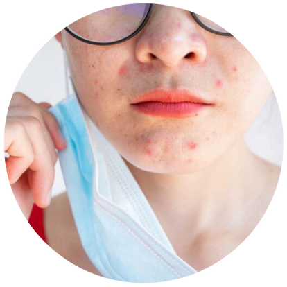 長期戴口罩蓋住皮膚,會使面部形成一個密閉的空間,加上人體呼吸時產生的熱氣、二氣化碳、面部的油脂分泌和汗水,口罩下的空間容易成為細菌的溫床,油脂分泌過於旺盛會使毛孔容易阻塞,誘發成為口罩暗瘡。