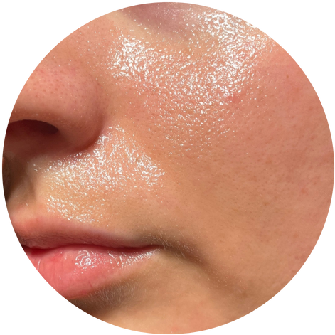 油性肌膚是最容易出油的膚質類型。這類肌膚的皮脂腺分泌旺盛,尤其T字部位(額頭、鼻子、下巴)甚至全臉常常泛油、光亮,毛孔粗大,容易產生黑頭、白頭粉刺與痘痘。雖然油性肌膚在年輕時容易困擾,但因為皮脂保護較好,通常老化速度比乾性肌膚慢。但要注意的是油性皮膚常有內乾外油的皮膚狀態,肌膚表面油脂過多未必代表足夠滋潤,很可能是肌底缺水才會被迫出油來給予臉皮滋潤,這也代表肌膚角質層保水度退化了!