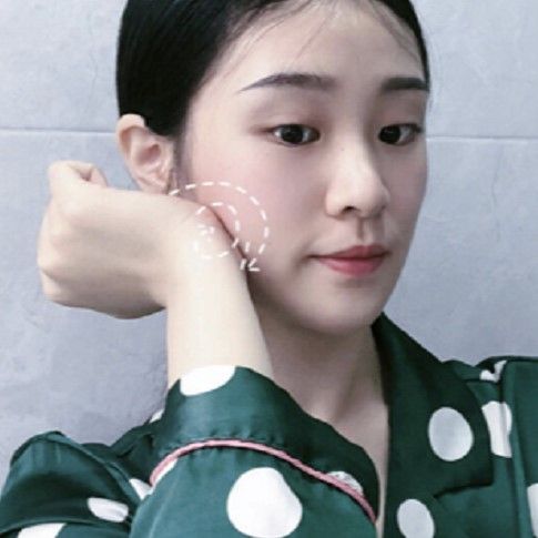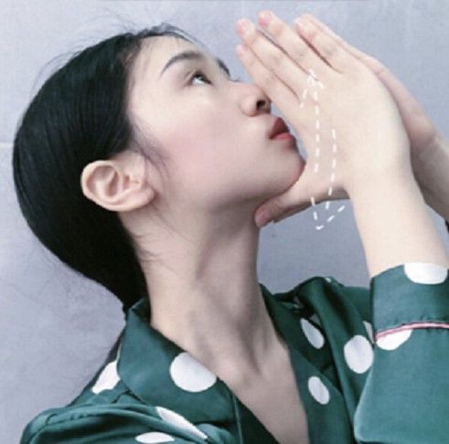 使用手腕輕輕按摩面頰,通過按摩來加快皮膚的血液循環,改善水腫的問題,同時排出老廢毒素。