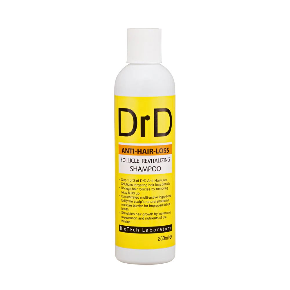 DrD 再生防脫髮洗髮露能夠清除頭毛及髮囊中過多的油分,減少頭油積聚,增加血液循環,滋養頭皮健康。產品亦可改善DHT對毛囊的影響,加入茶籽精萃,活化毛囊,提高氧分運送至髮囊,令頭髮健康生長。