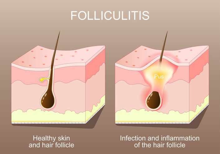 這類毛囊炎不是感染引起,而是毛囊口被堵塞,頭髮向內生長或剃毛後摩擦刺激毛囊周圍發炎。