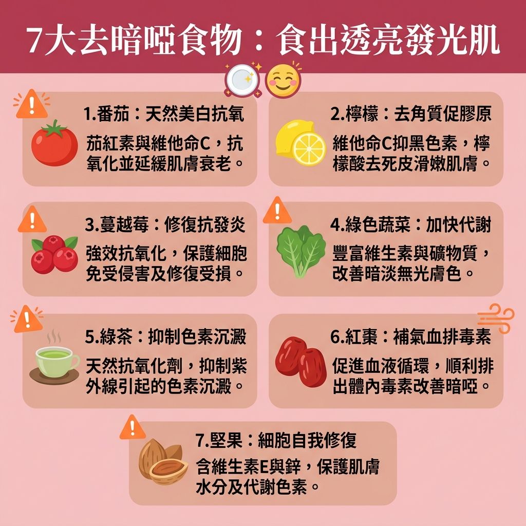 隨著年齡的增長,很多人都會發現自己的皮膚狀況每況愈下,各種初老症狀漸漸浮現在臉上。其中,皮膚初老最常見且明顯的特徵之一便是膚色暗啞。千萬別小看膚色黯啞這一問題,它不僅會導致我們的外表看起來非常憔悴,如果情況繼續惡化,甚至可能會導致色斑的出現,令人看上去異常蒼老。本文章細説了膚色暗啞的原因、改善膚色暗啞的食物以及改善問題的其它方法,以全力幫助大家臉部容光再現。