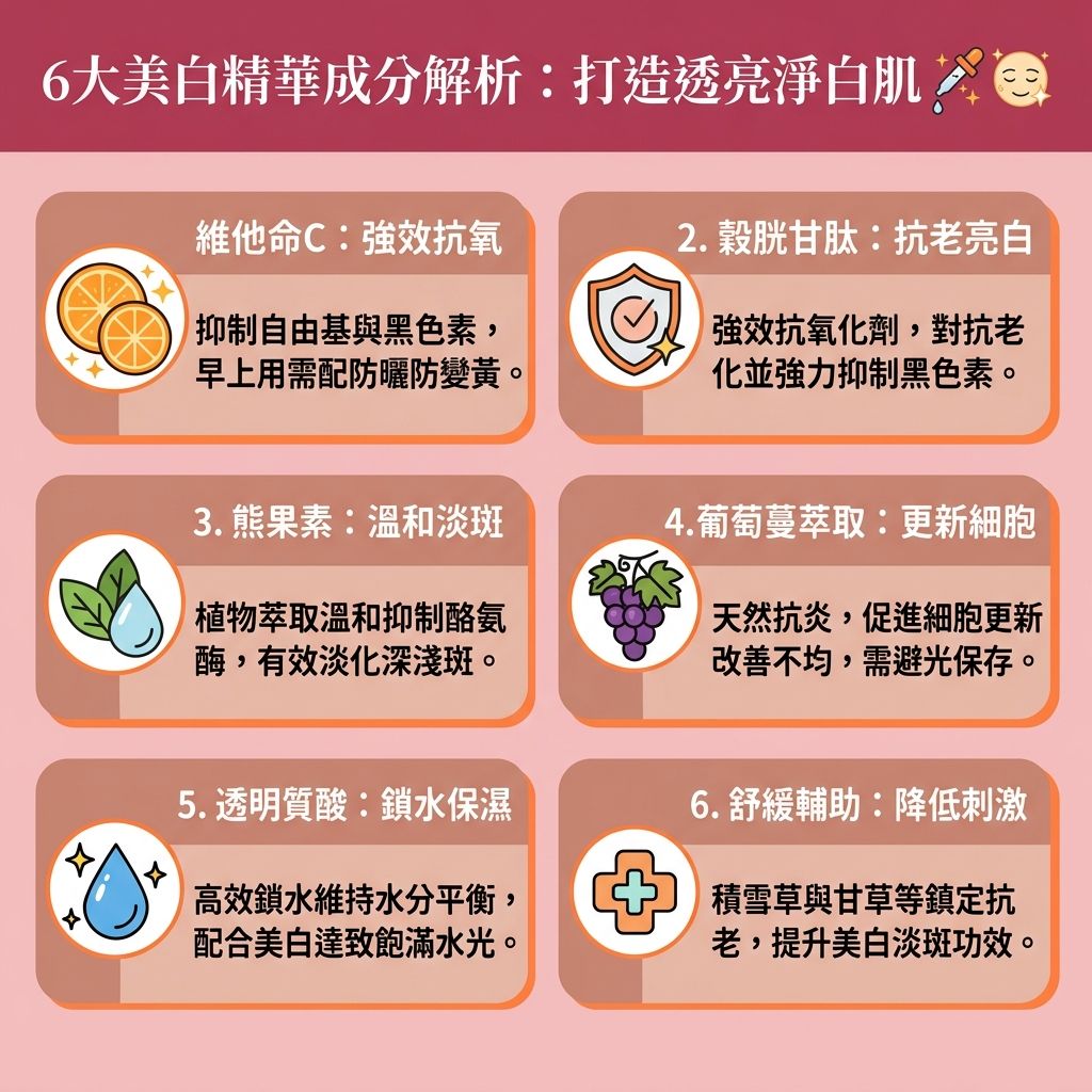 美白精華本身不會反黑。「反黑」通常是因為使用後沒有做好防曬,皮膚對紫外線更敏感導致。敏感肌適合使用,但應選擇傳明酸或煙酰胺等溫和成分,避開高濃度純維他命C或果酸。