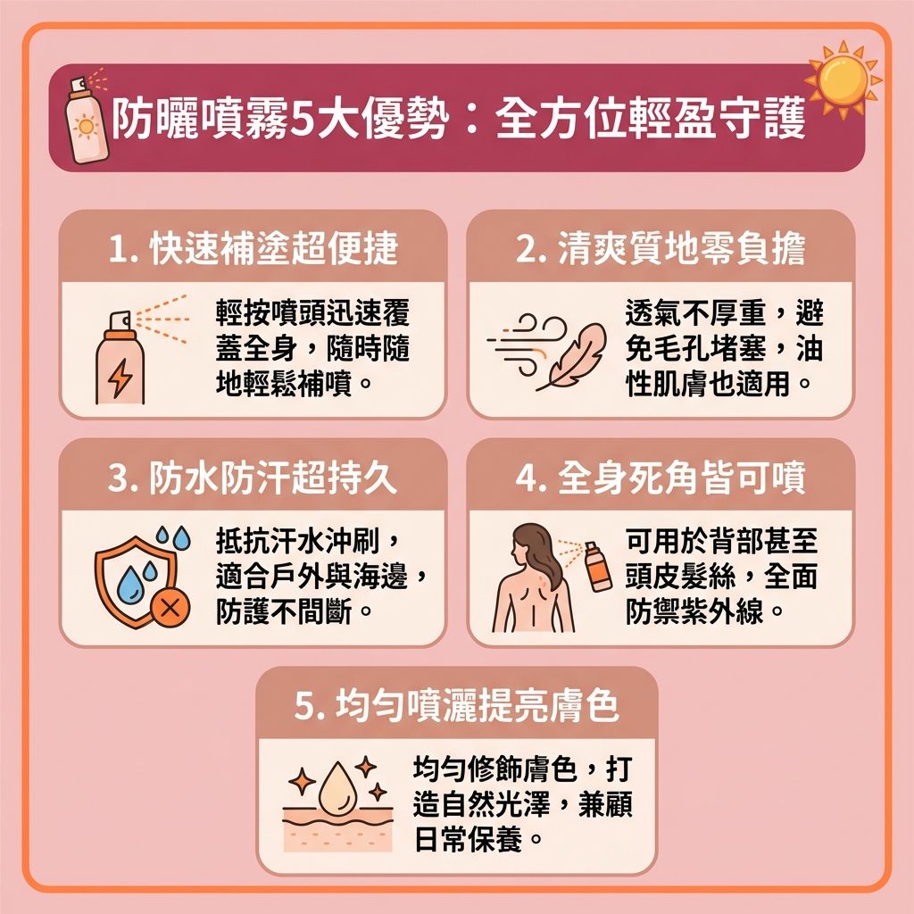 全面守護的輕盈選擇:防曬噴霧的5大特性與功效解析