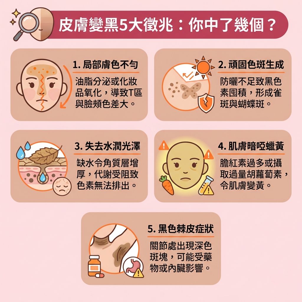 皮膚開始變黑的症狀有哪些?趕緊觀察身上部位有無這5種現象!
