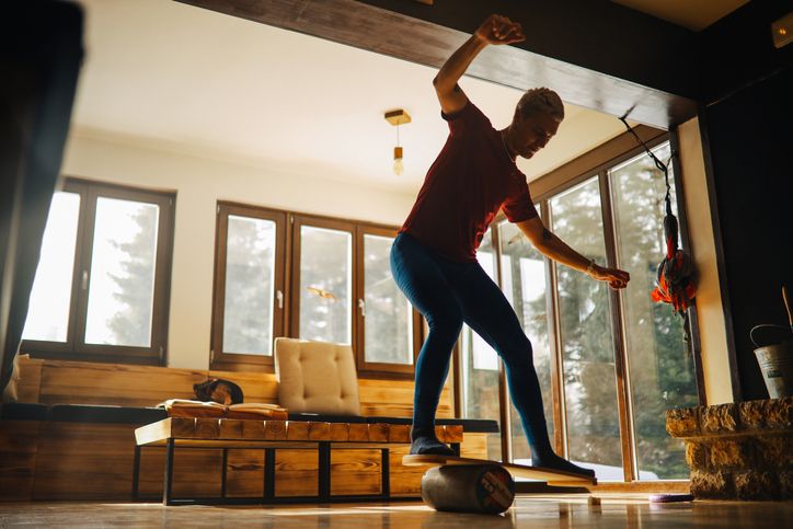 這是最具挑戰性的一款,常見於衝浪、滑雪等極限運動的健身訓練中。它由一塊木製平板和一個獨立的圓柱狀滾筒組成。