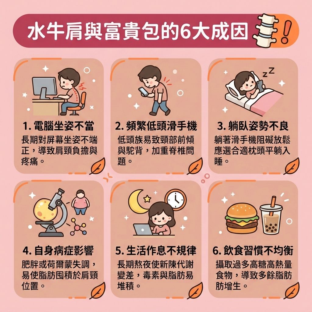 水牛肩的6大成因:富貴包藏匿在我們日常的姿勢與細節?