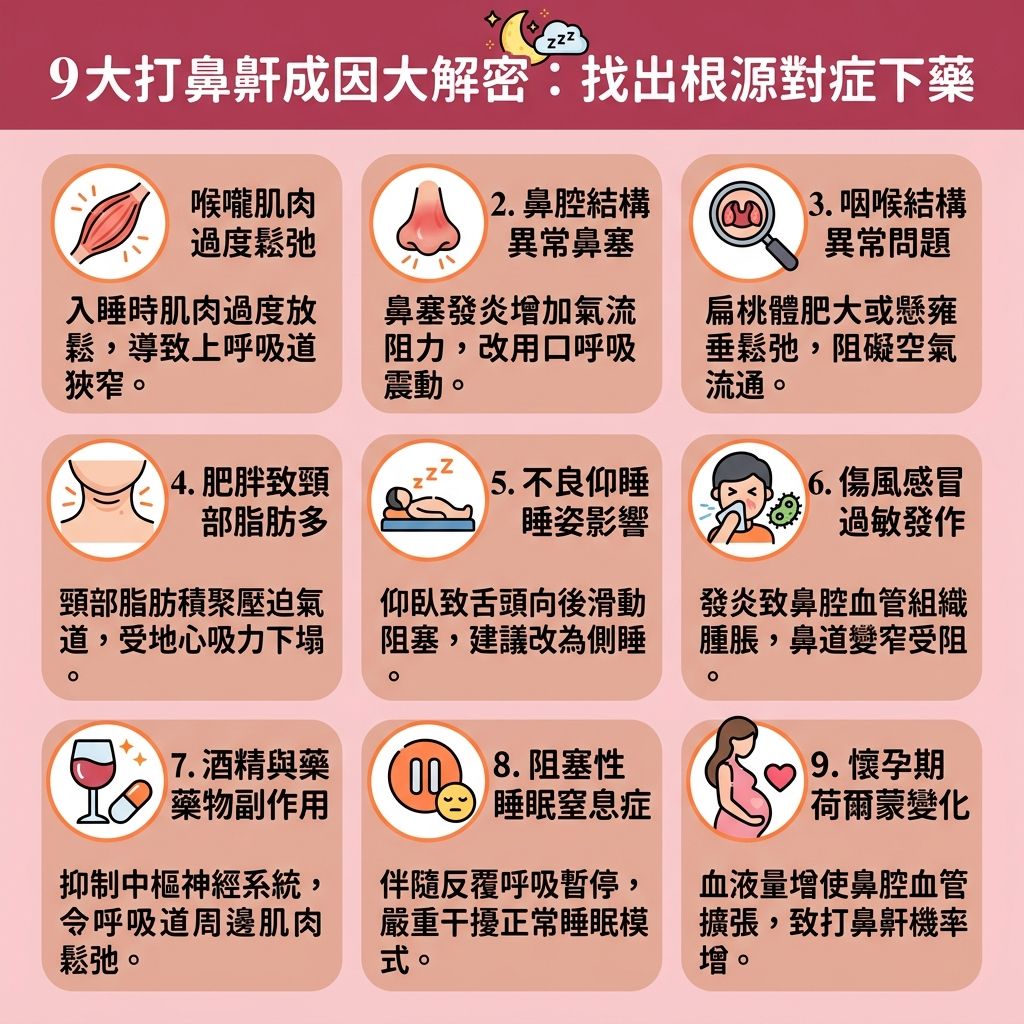 - 為什麼會打鼻鼾?掌握5大鼻鼾成因+日常調整與專業治療方法!