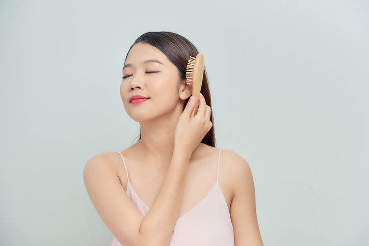 • You may pair brushing with your fingertips or a massage brush to stimulate acupoints such as Baihui, Fengchi, and Taiyang.