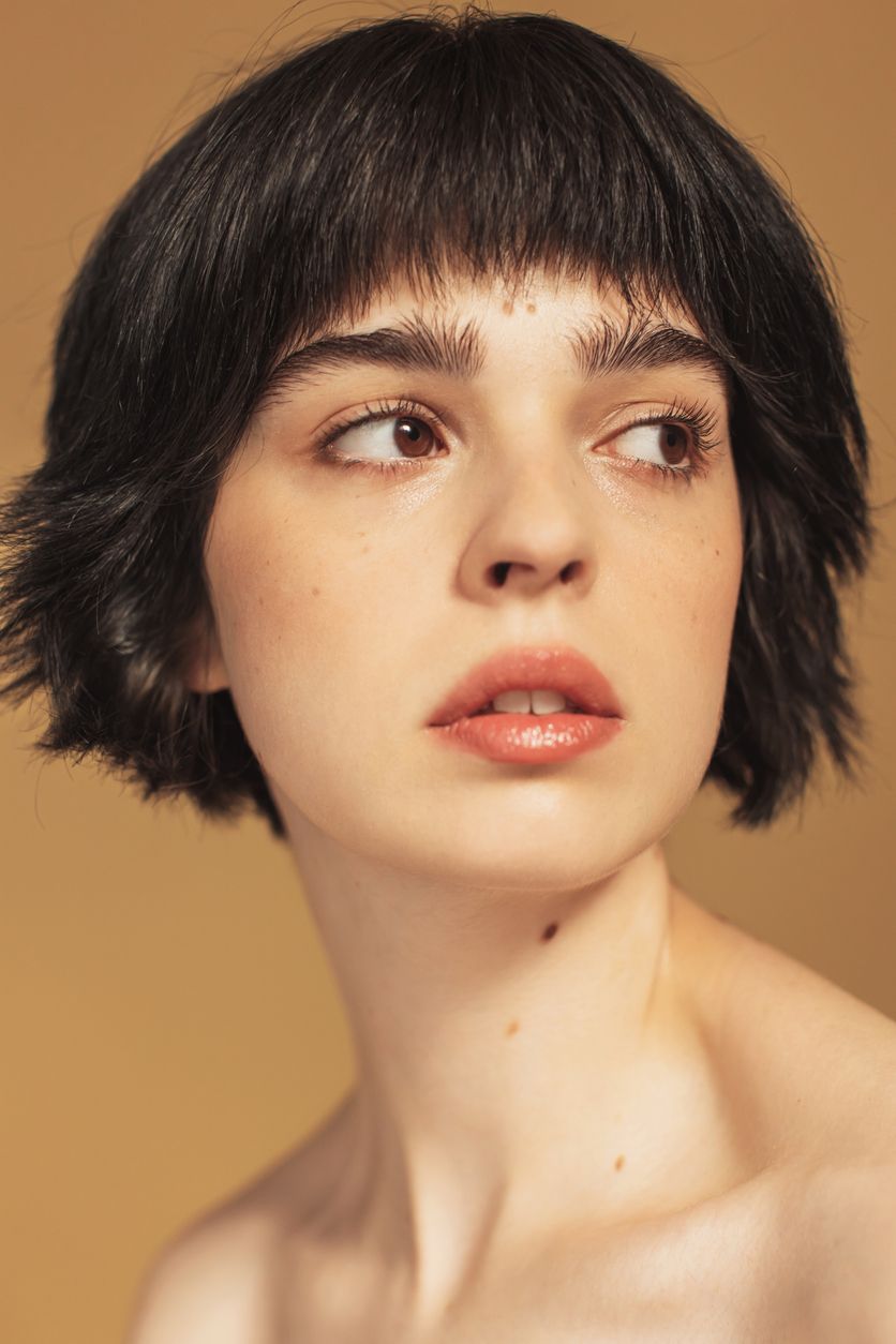 • Round face: Opt for thin, airy bangs to elongate the face and avoid adding too much volume.